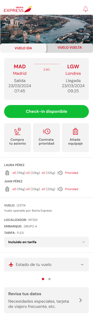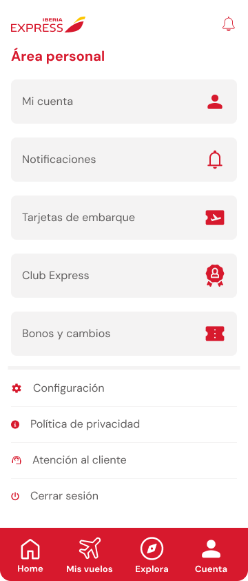 I participated in the design and development of the first version of Iberia Express’s post-sales mobile app. The app enables users to independently manage key travel services such as check-in, seat selection, extra luggage, priority boarding, and in-flight entertainment access.